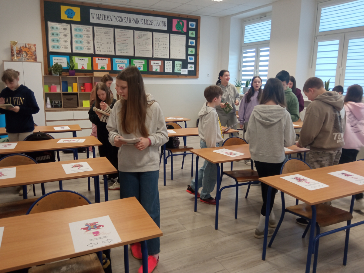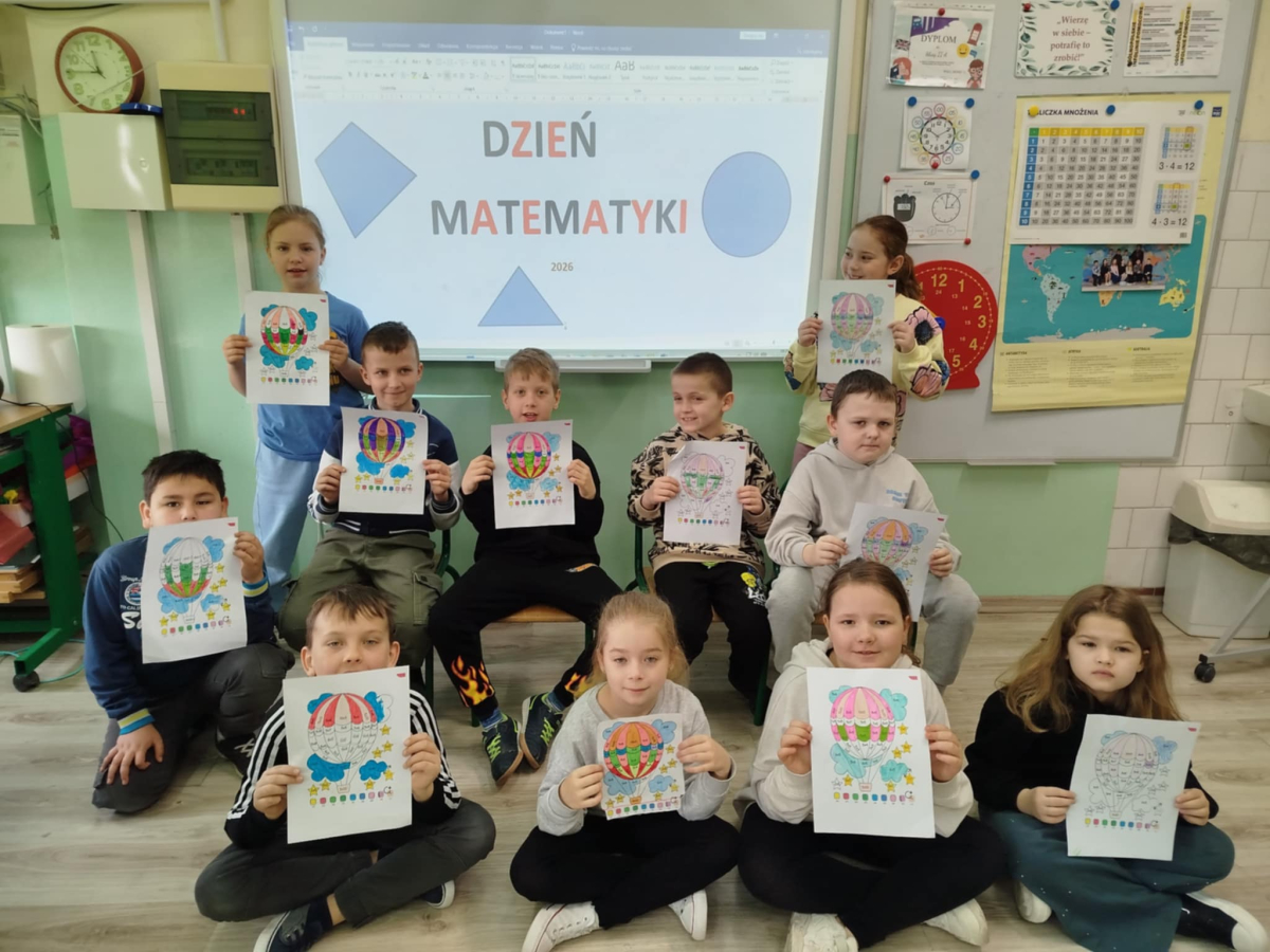 Dzień Matematyki w naszej szkole był pełen emocji, dobrej zabawy i oczywiście matematycznych wyzwań. Już od samego rana we wszystkich klasach odbywały się różnorodne gry i zabawy matematyczne, które angażowały uczniów w aktywne myślenie i współpracę. Dzieci z dużym entuzjazmem rozwiązywały zadania, łamigłówki oraz zagadki dostosowane do ich wieku. Wszyscy chętnie podejmowali wyzwania i z zaangażowaniem walczyli o jak najlepsze wyniki.