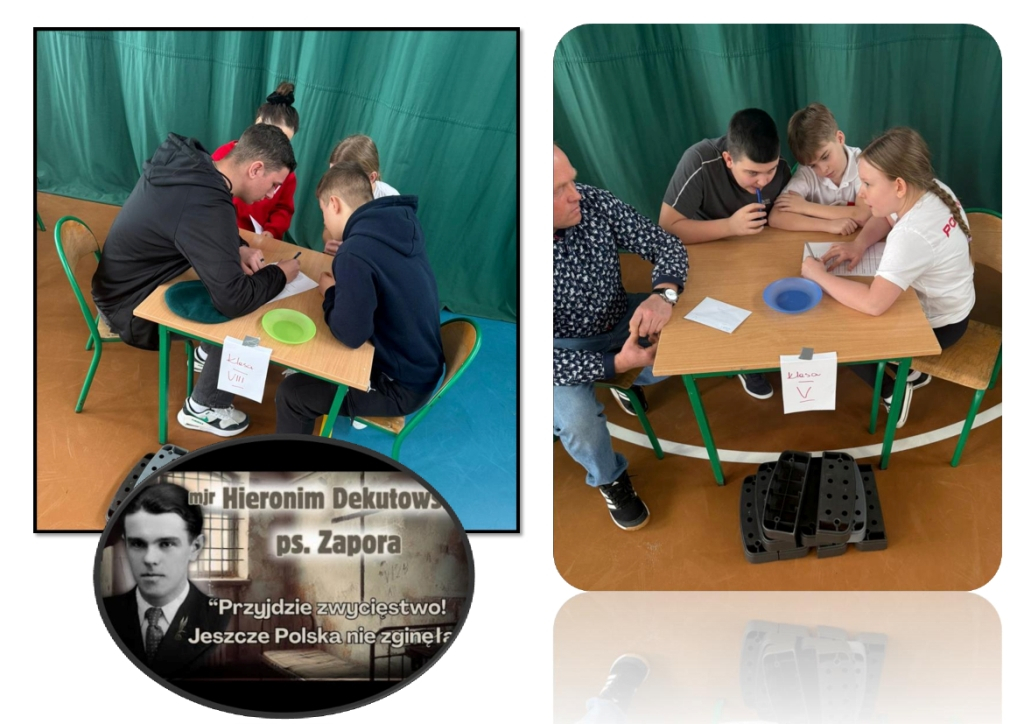 To już IX edycja „Gry szkolnej”. W tym roku Bohaterem zmagań był mjr Hieronim Dekutowski ps. „Zapora”. Rywalizacja składała się z 8 zadań. Wzięło w niej udział sześć 4- osobowych drużyn z klas V-VIII. Tegoroczne drużyny były wspierane przez przedstawicieli rodziców i nauczycieli. Pozostali uczniowie wraz ze swoimi wychowawcami zasiedli w roli kibiców i obserwatorów.
